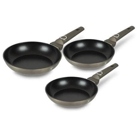 A szett tartalma: A szett tartalmaz egy 20 cm átmérőjű serpenyőt 1,0 literes űrtartalommal, egy 24 cm átmérőjű serpenyőt 1,7 literes űrtartalommal és egy 28 cm átmérőjű serpenyőt 2,4 literes űrtartalommal.