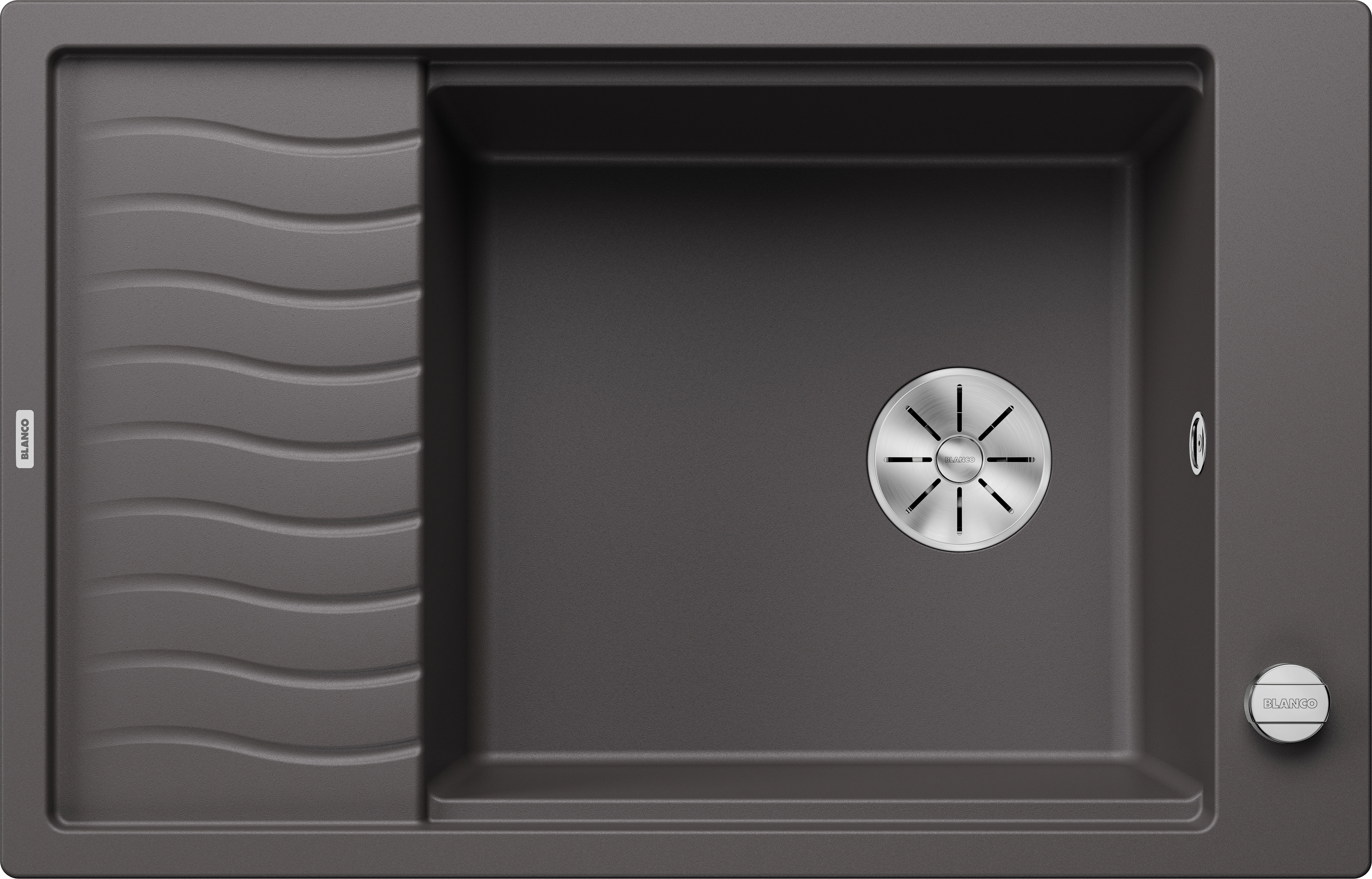 Rozsdamentes csepegtetőrács, lefolyógarnitúra helytakarékos csővel, 3 1/2“-os InFino® szűrőkosár, lefolyó-távműködtető (tekerőgomb)