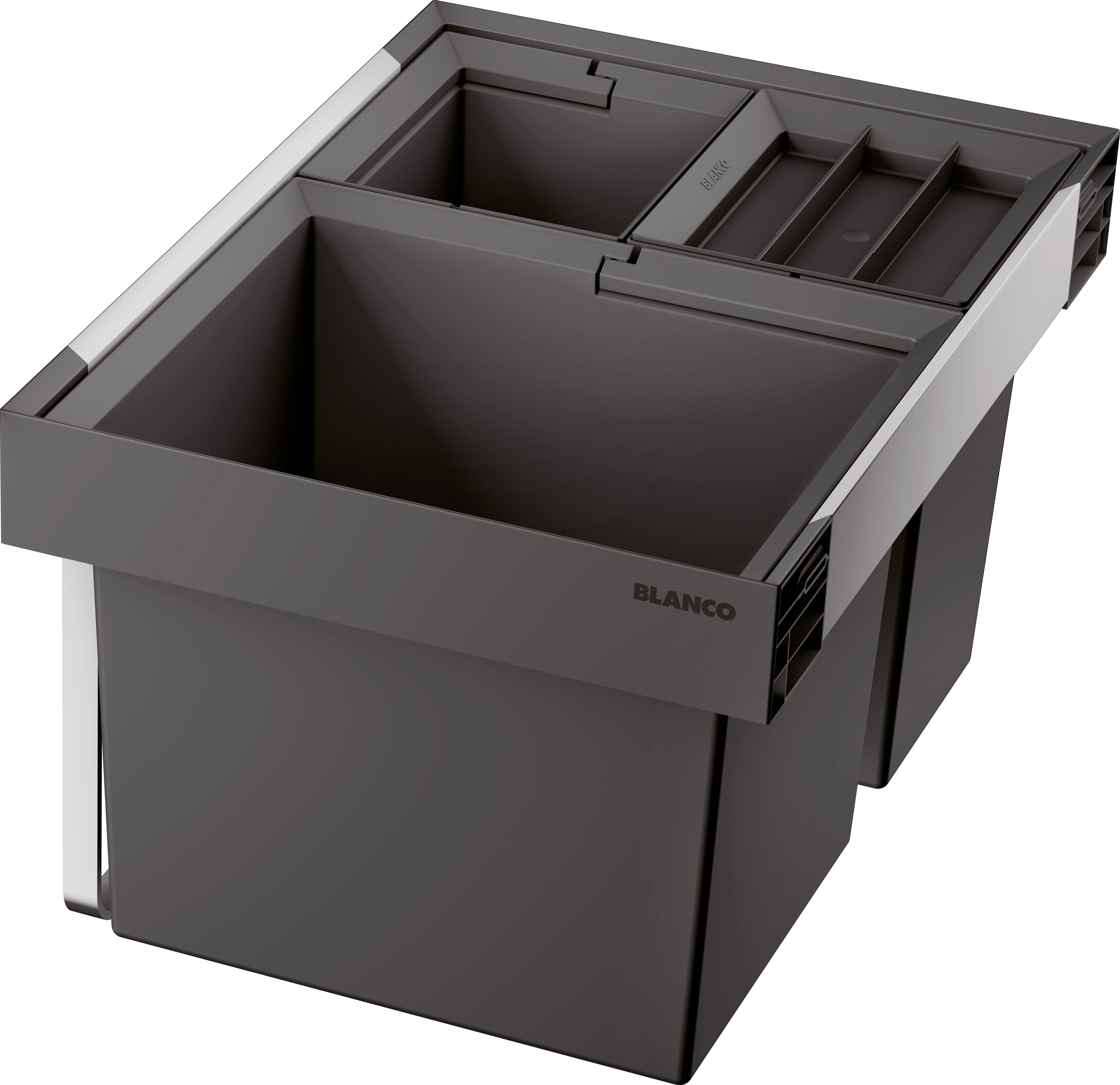 - Sokféle hulladék szétválasztási és tárolási lehetőség a rugalmas vödörkombinációk révén, csökkentett helyigény a mosogatószekrényben