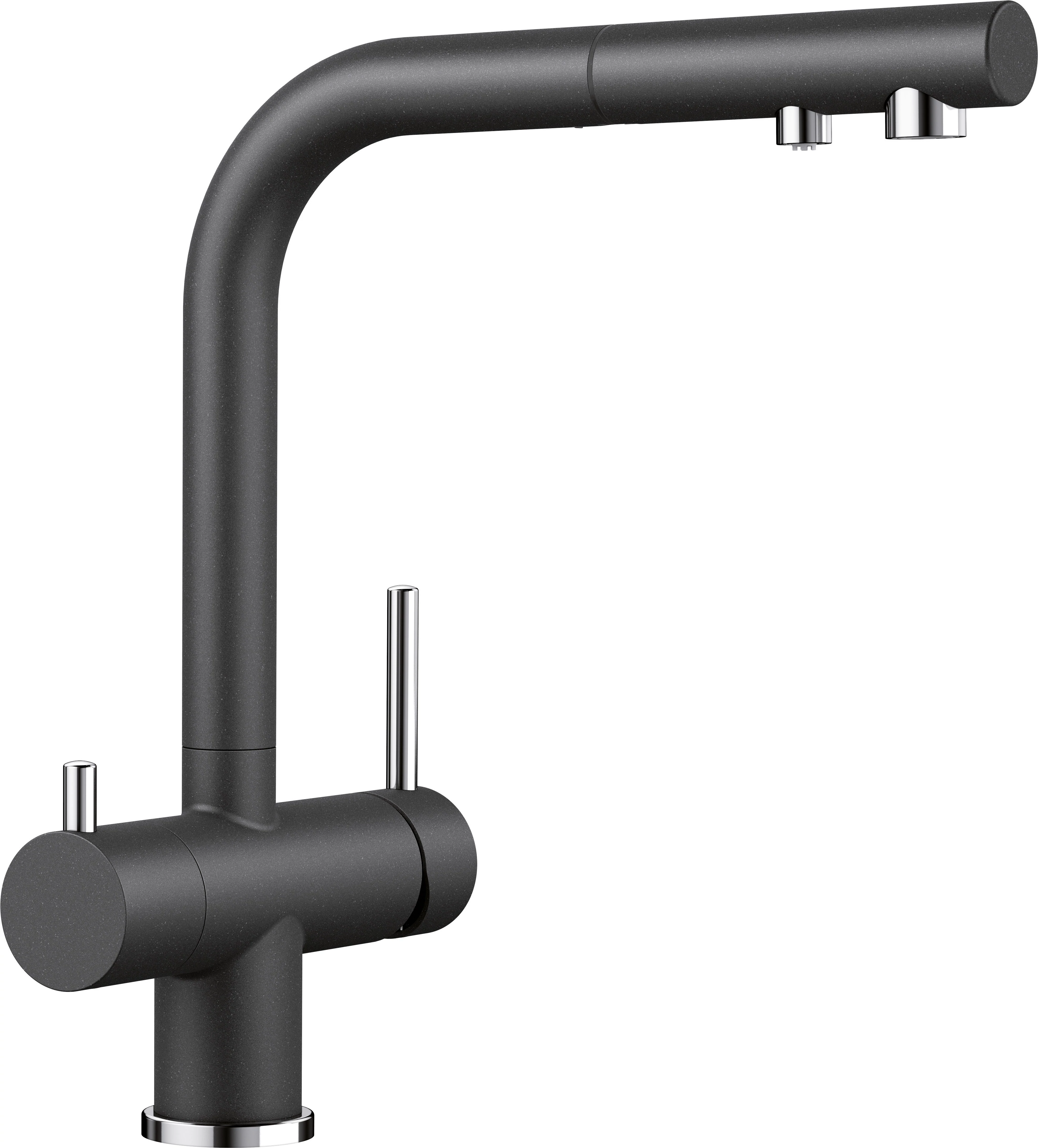 - Kényelmes 3 az 1-ben csaptelep: szűrt és szűretlen víz a kihúzható kifolyón keresztül