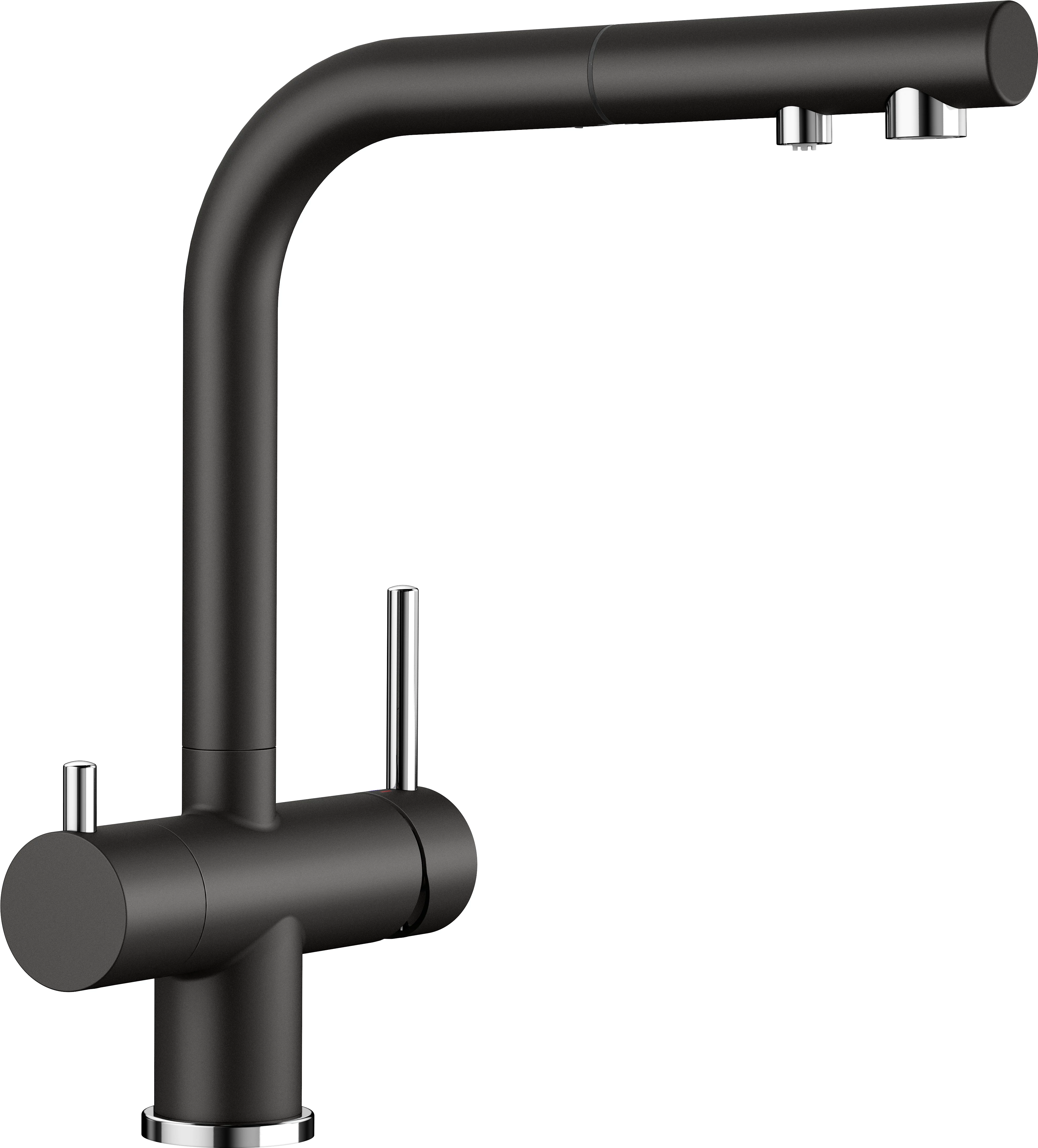 - Kényelmes 3 az 1-ben csaptelep: szűrt és szűretlen víz a kihúzható kifolyón keresztül