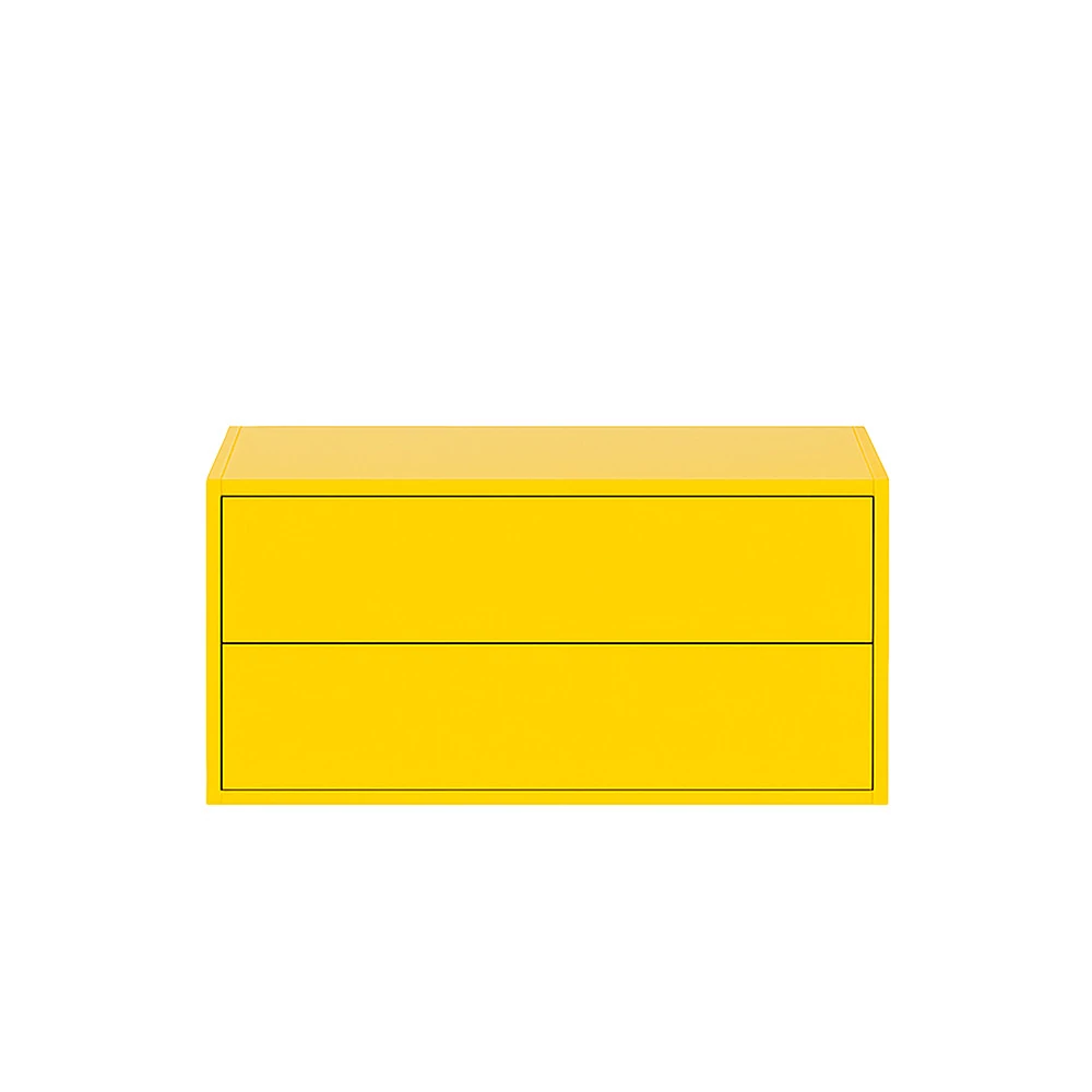 A Boxie 2 fiókos fali szekrény sárga színben a letisztult formavilág és a praktikus tárolás ideális kombinációja. A 40x80x37 cm-es méretnek köszönhetően tágasabb tárolófelületet kínál, így nagyobb helyiségekben is remekül érvényesül, miközben sárga színével elegáns, letisztult és modern hangulatot ad a belső térnek.