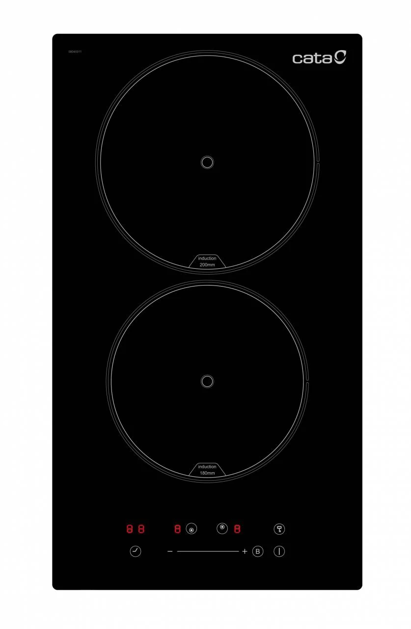 2 főzőzónás indukciós kerámialap, 1 db 180 mm átmérőjű, 1 db 200 mm átmérőjű főzőzóna, BOOSTER funkció, 9 fokozat, érintővezérlés, gyermekzár, időzítő, automatikus edényfelismerés és kikapcsolás, 3,5 kW, Quick-Fix System
