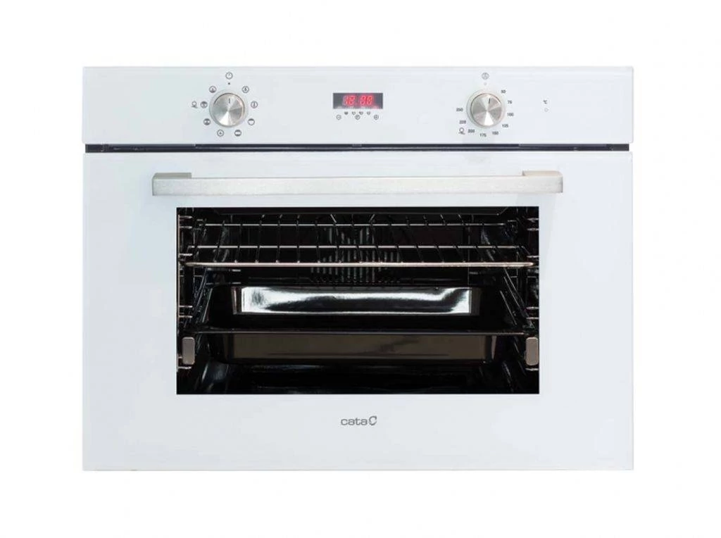 Kompakt méretű sütő (45 cm magas), 8 sütőfunkció, süllyesztett gombok, programozható digitális óra, 40 literes sütőtér, sütővilágítás, állítható hőfok 50-250 ºC, 4 szint a tálcák elhelyezéséhez, tripla üvegezésű sütőajtó, fehér üveg előlap, 1 db kihúzható sütősín, 1 db mély tepsi (5 cm), 1 db grillrács