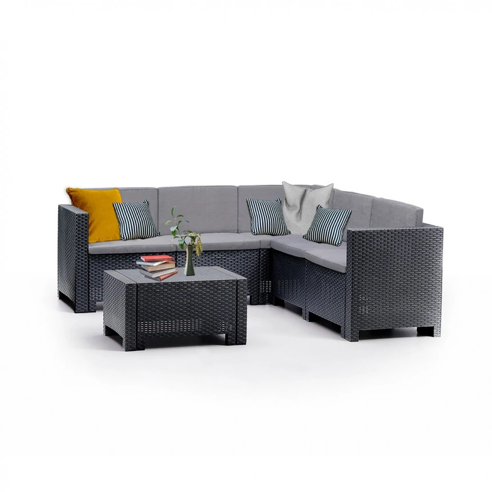Szeretnél egy olyan kültéri ülőgarnitúrát, ami nem csak szép, de tényleg kényelmes is? A Leziter City sarok kerti bútor garnitúra úgy készült, hogy hosszú éveken át a kerted, teraszod vagy erkélyed legkedveltebb pontja legyen. Egy stílusos, modern kialakítású, 5 személyes sarokkanapéval és egy praktikus, négyszögletes asztallal felszerelt szett, amely nem csak esztétikai élményt nyújt, de funkcionálisan is minden igényt kielégít – a kényelmet pedig az ülő- és hátpárnák biztosítják, amelyek a szett részét képezik, díszpárna azonban nem tartozik hozzá.