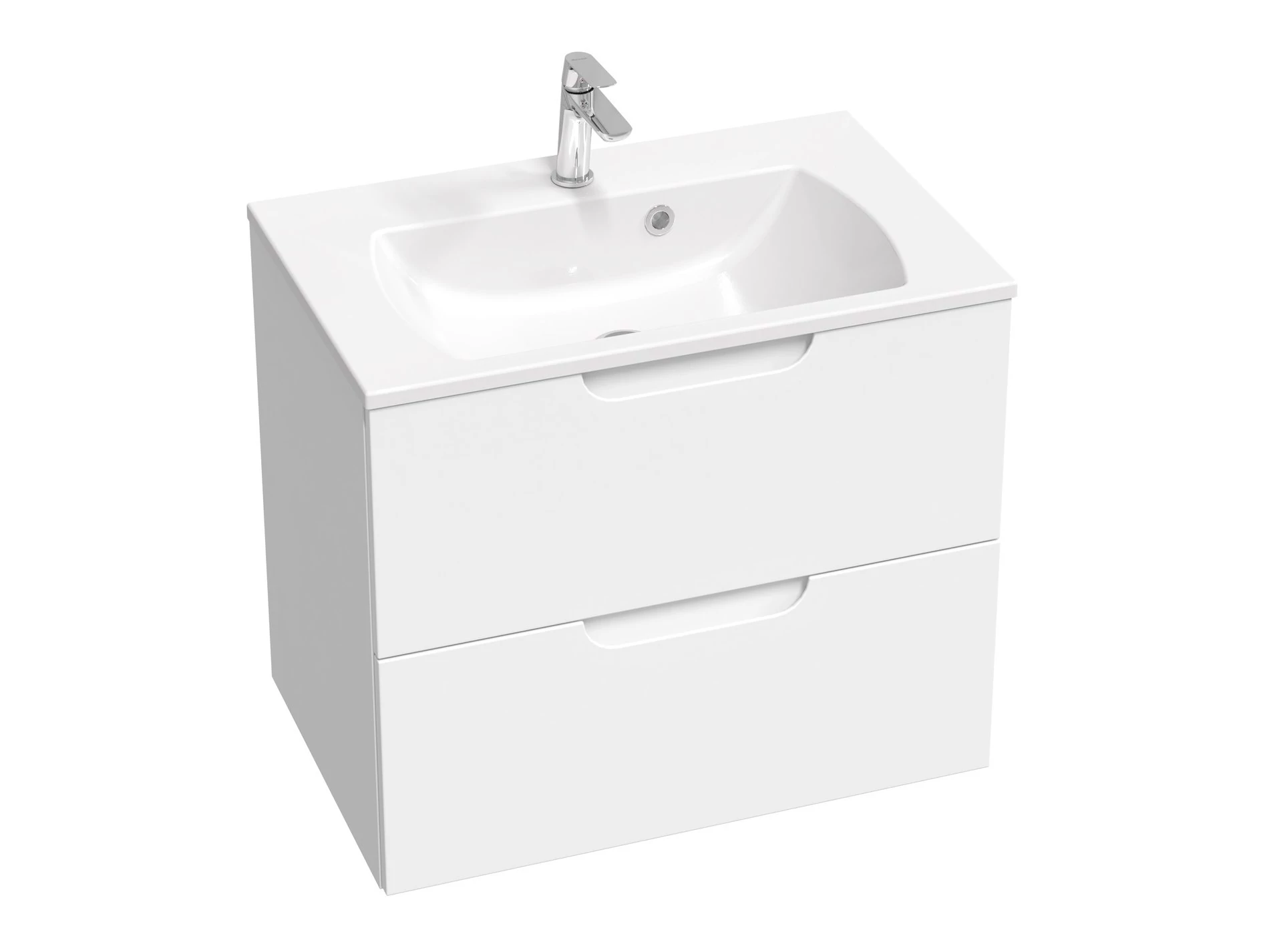 Balance II mosdó alatti szekrény fehér kivitelben. A fogantyú három színben külön megvásárolható.