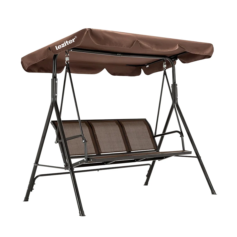 Az egyenes lábaknak köszönhetően a Como kerti hintaágy rendkívül stabil, biztonságosan használható bármilyen sík felületen, így nem kell attól tartanod, hogy megbillen vagy elmozdul. Akár reggeli kávézásról, délutáni olvasásról vagy esti beszélgetésekről van szó, mindig kényelmes és megbízható pihenőhelyet biztosít a kertedben. A letisztult khaki szín és a diszkrét logó elegáns megjelenést kölcsönöz, amely tökéletesen illik bármilyen kültéri környezetbe.
