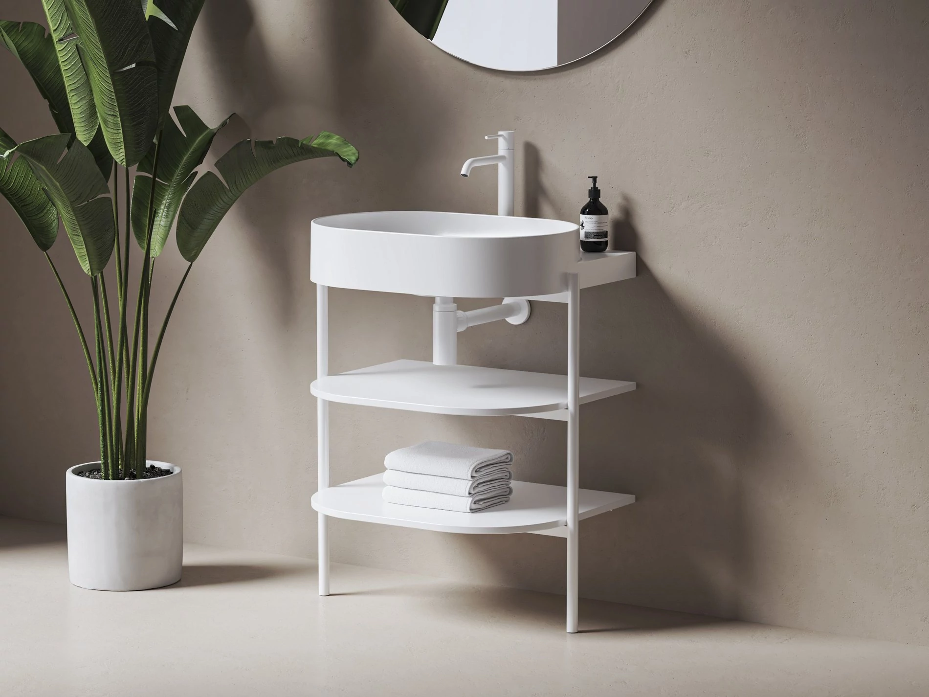 Álló fémszerkezet CS Yard 40 polcokkal a Yard 40 mosdó beépítéséhez matt fehér kivitelben. Matt fekete színben.