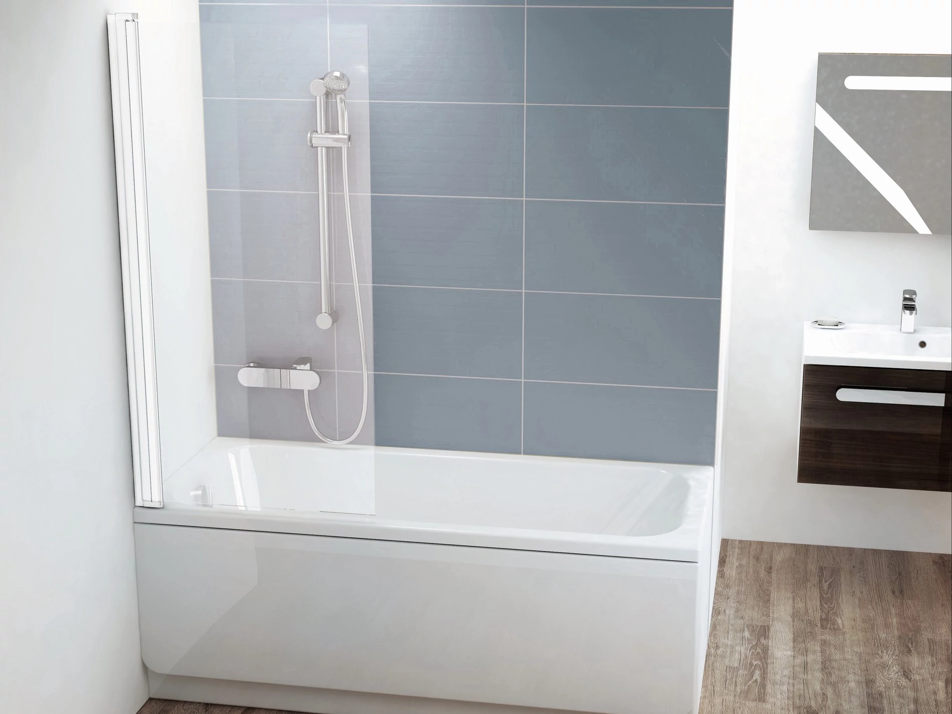 A fürdőkád paraván 6 mm vastag biztonsági üvegből készült. A termék egy kifelé és befelé is nyitható ajtóból áll. A kifelé-befelé nyithatóság, valamint a Transparent üveg megkönnyíti a tisztántartást. A fürdőkád paravánt téglalap alakú kádakhoz lehet telepíteni vagy bármilyen hagyományos téglalap alakú kádhoz, amelynek felső széle egyenes. A paraván standard magassága 1500 mm.