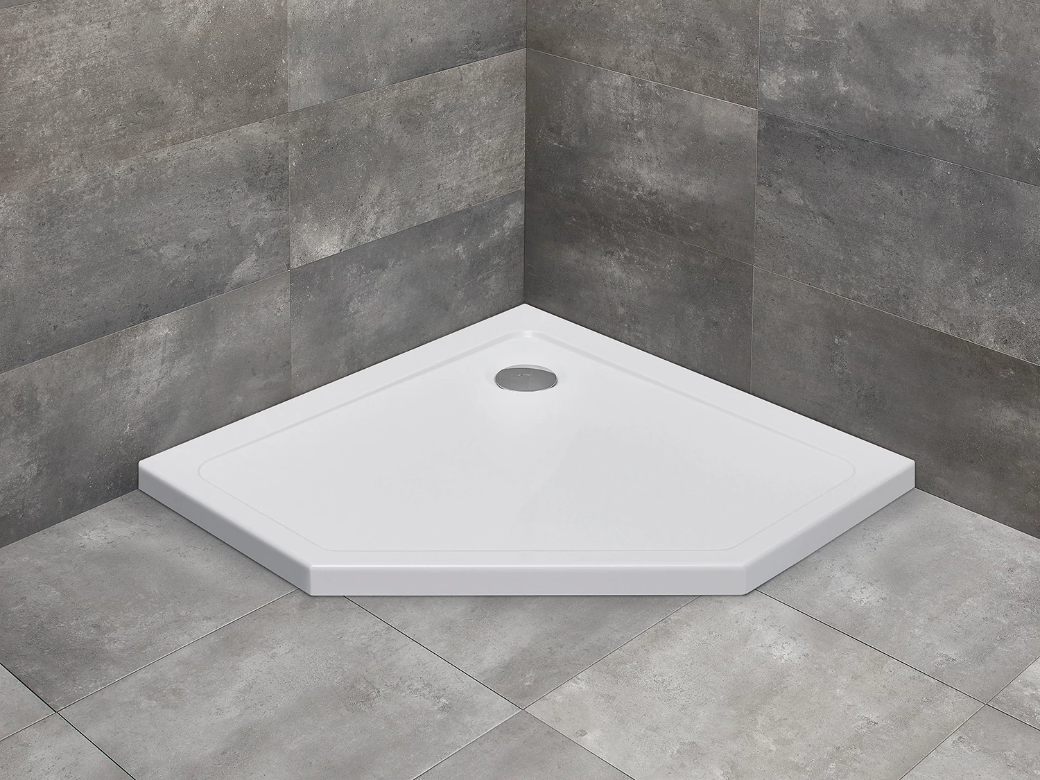 Ötszögletű akril zuhanytálca, állítható lábakkal.