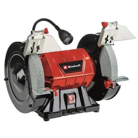 Az Einhell TC-BG 200 L egy praktikus és rendkívül sokoldalú kétkorongos köszörűgép, amely nem hiányozhat egyetlen ezermester műhelyéből sem! A készülék segítségével ollókat, késeket és pengéket, vágólapokat, fúrószárakat és marókat, sőt, akár még vésőket is megélezhet! A kétkorongos köszörűgépet használhatja még rozsda eltávolítására és sorjázásra, valamint fából, műanyagból és fémből készült munkadarabok csiszolására és polírozására. A készülék speciálisan kisebb javításokhoz és vágóélek utánélezéshez, sorjázásához készült, használhatja azonban komolyabb javítási- és korrekciós munkákhoz, vagy köszörüléshez is. A dönthető LED-világítás segítségével könnyedén megvilágíthatja a munkaterületet. A strapabíró és kompakt fémkonstrukció hosszú élettartamot biztosít. A nagy méretű és állítható munkalemez lehetővé teszi, hogy a legkülönbözőbb feladatokat is könnyedén elvégezhesse, a holtjáték nélküli golyóscsapágyazott tengely pedig mindig pontos végeredményt szavatol. A biztonságról a szerszám nélkül beállítható szikrafogó üvegek és az oldalt zárt védőburkolatok gondoskodnak. A csökkentett rezgésszintet és a maximális stabilitást négy darab gumiból készült láb biztosítja. A gyári csomagolás 1-1 darab durva- és finom korongot (K36/K60) tartalmaz.