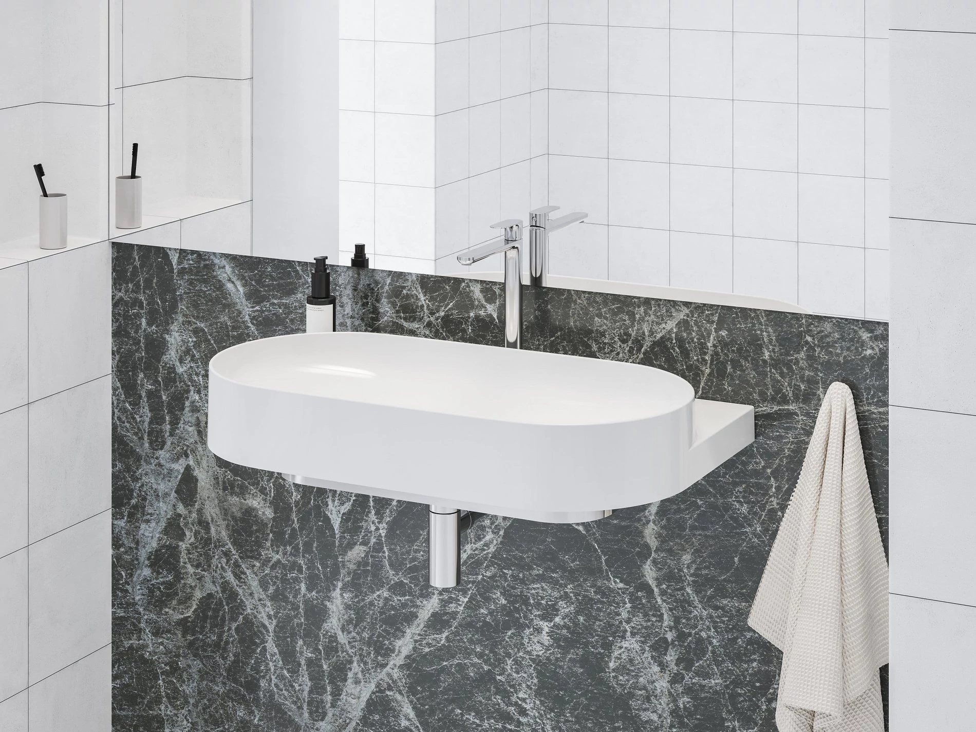 Espirit álló mosdócsaptelep leeresztő nélkül. White Velvet kivitelben. Rejtett perlátor EcoFlow funkcióval. BeCool funkció, amely csökkenti a vízfogyasztást.