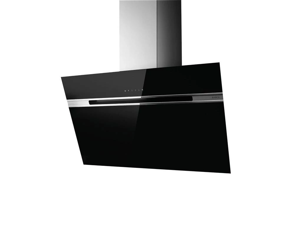 Elica STRIPE BL/A/90/LX döntött üveges fali páraelszívó fekete üveggel és inox kürtővel