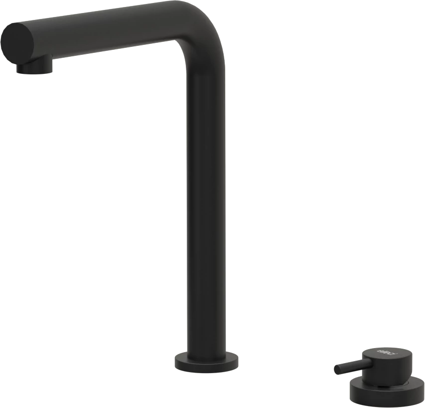 Egykaros modern, magas, kerámiabetétes csaptelep, külön szabályzóval, forgatható kifolyócsővel. A külön szabályzót a pultba kell beszerelni szintén egy Ø35 mm-es furattal. A csaptelep és a vezérlő beépítéséhez 1-1 db Ø35 mm-es furat szükségeltetik.