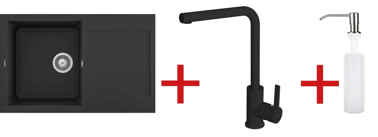 Elleci akciós szett ajánlat: mosogatótálca+csaptelep+mosogatószer-adagoló.