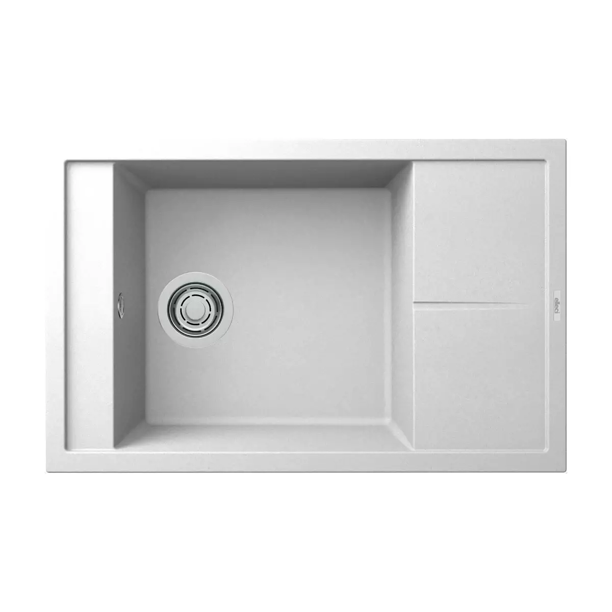 Az ELLECI Unico 305 Granitek (G68 Bianco) egymedencés, csepptálcával ellátott mosogatótálca könnyen a konyha egyik legfontosabb munkaállomásává válhat. A csaptelep oldalra helyezett kialakítása lehetővé teszi, hogy a tartozékok a mosogató teljes hosszában szabadon mozogjanak, így a munkaterület egységes és zavartalan marad. Ez a megoldás nemcsak esztétikus, hanem rendkívül praktikus is, hiszen a mosogatás, öblítés és előkészítés folyamata gördülékenyebbé válik.