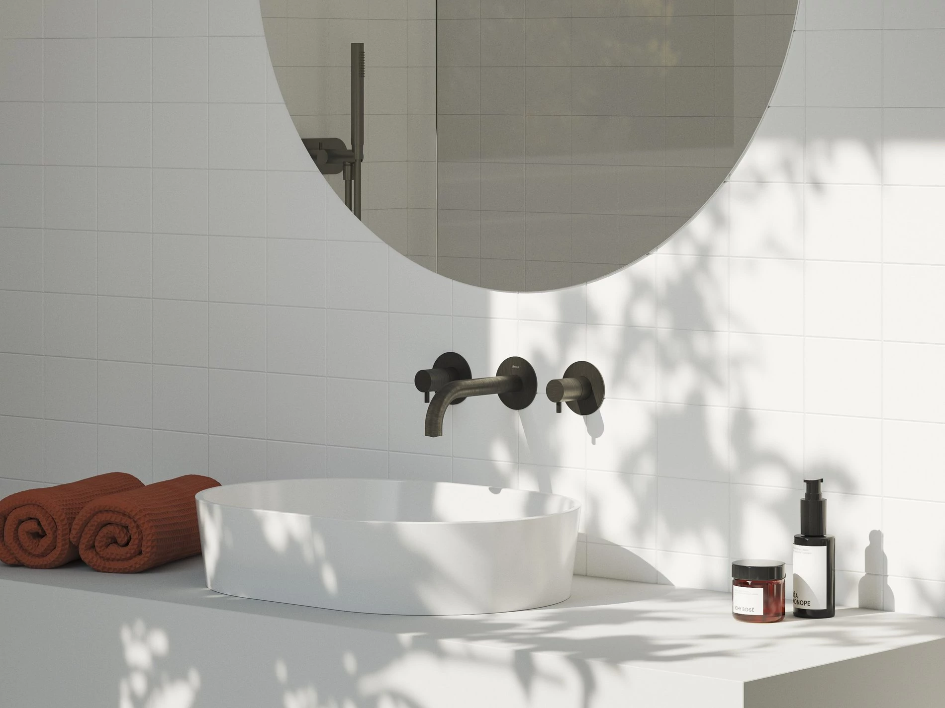 Espirit fali kád csaptelep, testtel. Graphite Brushed kivitelben. Rejtett perlátor.