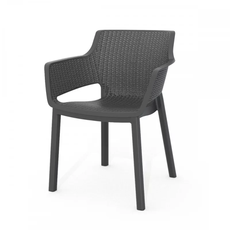 Az Eva műanyag kerti szék az ergonomia és a modern design jegyeit ötvözi. A grafit színű, rattanhatású szék nem csupán esztétikailag kiemelkedő, hanem a formatervezés minden aspektusában a kényelmet szolgálja. Az ülőfelület és a háttámla ívelt kontúrja egy hosszúra nyúlt nyári estén is kényelmet nyújt.