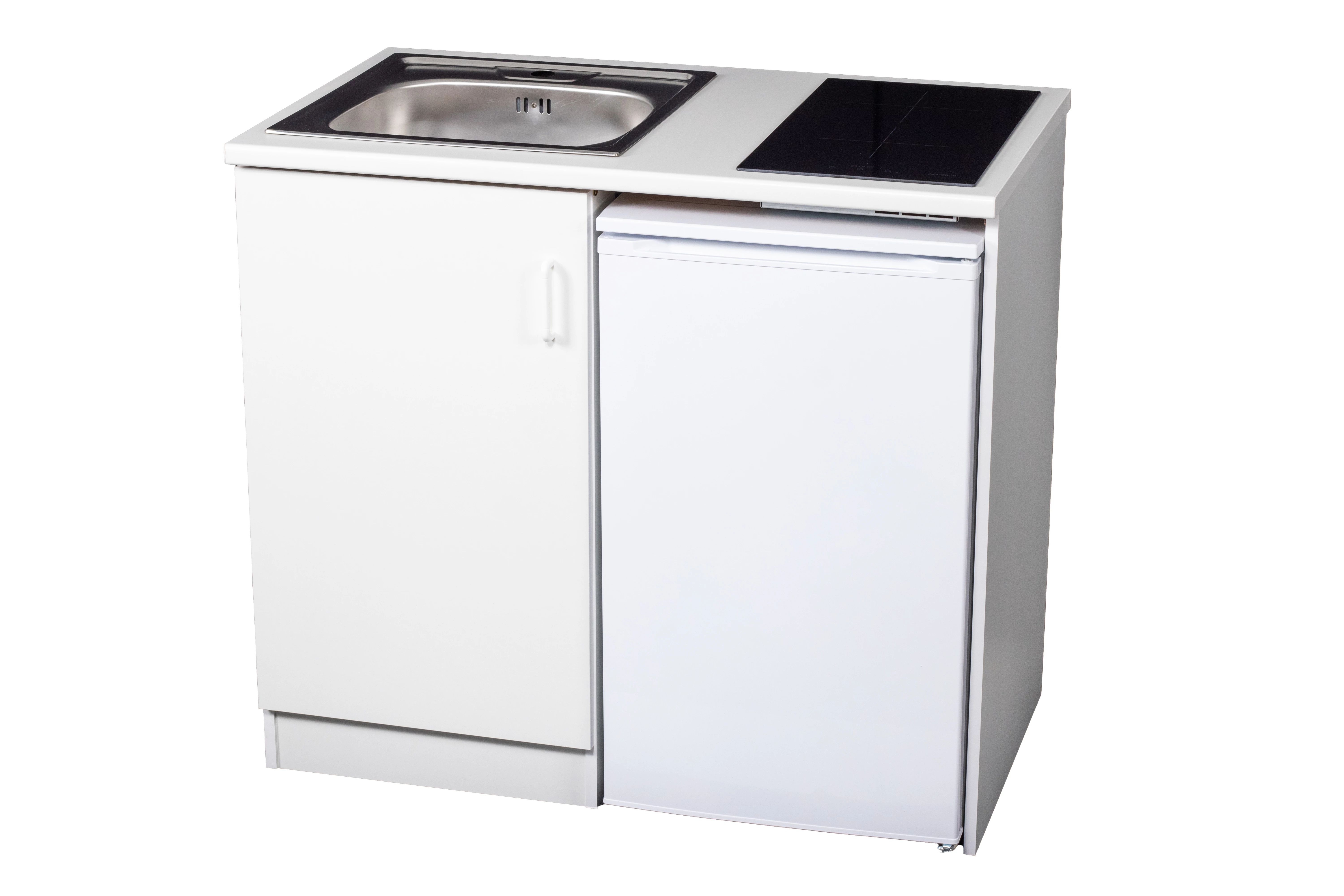 EVIDO WEEKEND minikonyha jobb oldali hűtővel, indukciós főzőlappal, egymedencés rozsdamentes mosogatóval