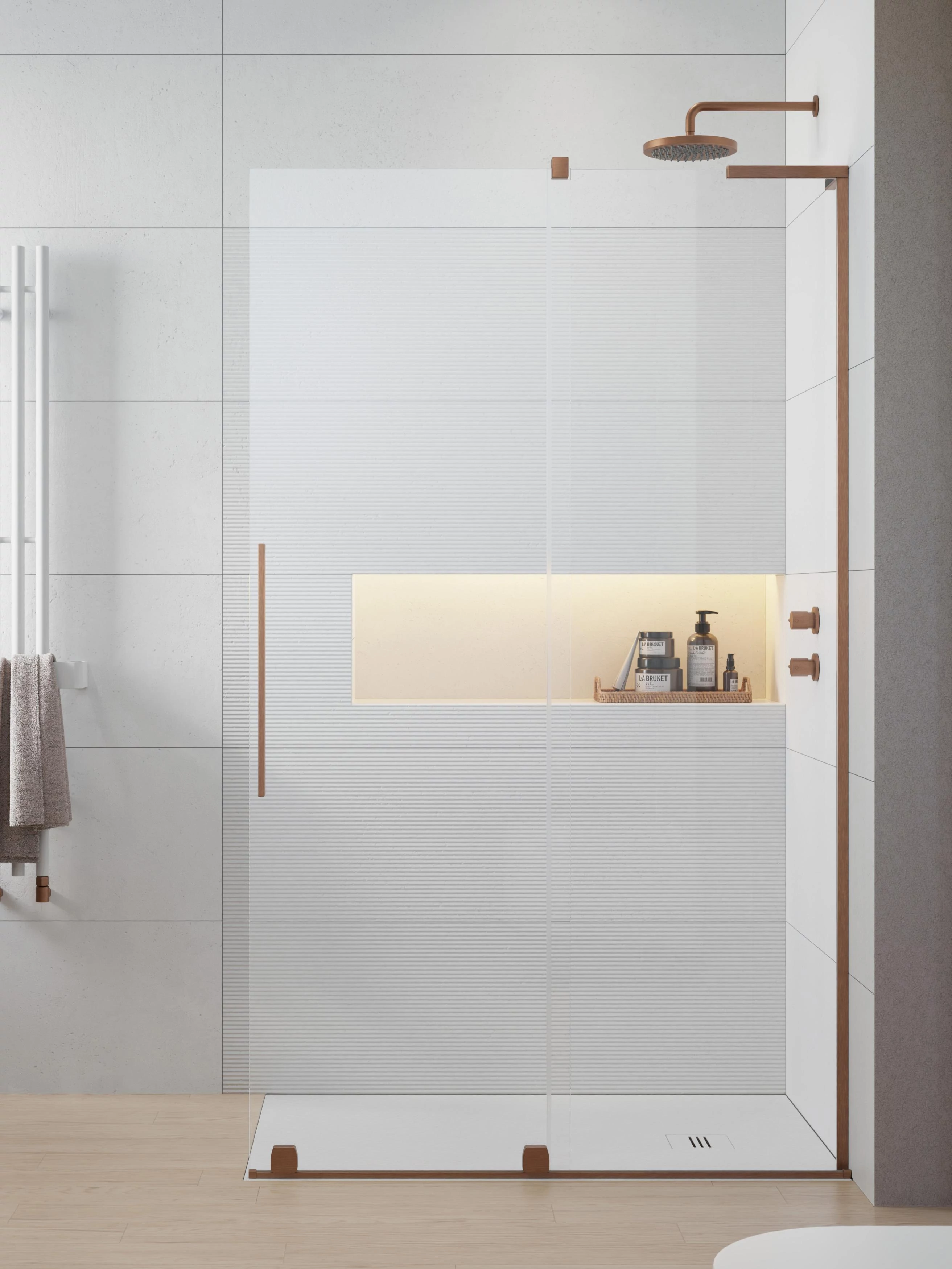 Furo SL Brushed Copper Walk-in szálcsiszolt réz zuhanyfal 120 átlátszó jobbos
