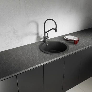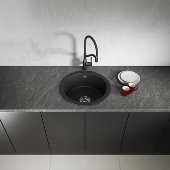 Laveo DAFNE fekete egykör szemcsés mosogató, helytakarékos szifonnal