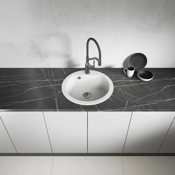 Laveo DAFNE egykör fehér mosogató csaplyukkal, helytakarékos szifonnal