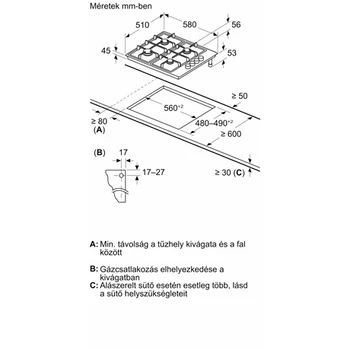 Bosch FŐZŐLAP BEÉPÍTHETŐ GÁZ PBP6B5K80H