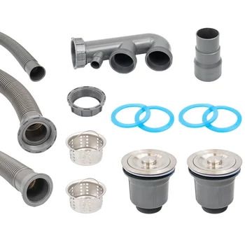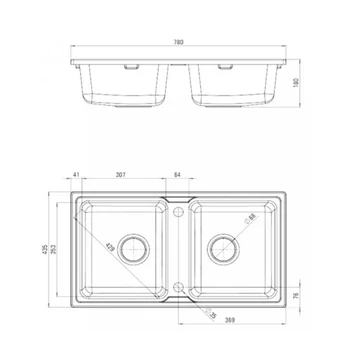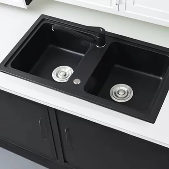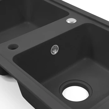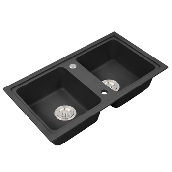 Tia szögletes két medencés gránit mosogató szifonnal fekete