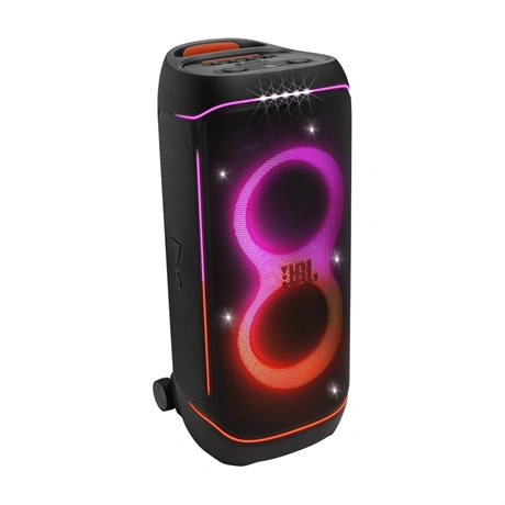A JBL PartyBox 720-al bárhová elvisszük a bulit. Kiváló JBL Pro hangzás, mély, precíz basszus és egy mindent elsöprő fényjáték. Lehet, hogy nagy, de gurulásra tervezték, kényelmes fogantyúval, széles kerekekkel és cseppálló kialakítással, amely egy kis medenceparti bulit is elbír. A cserélhető akkumulátorok (külön megvásárolhatók) akár 15 óra lejátszási időt biztosítanak – tökéletesek a hálózaton kívüli bulikhoz. Sztereó hangzás végett párosíthatunk két 720-ast, vagy vezeték nélkül összekapcsolhatunk több JBL Auracast™-képes hangszórót, a még nagyobb hangzás érdekében. És akár streamelünk, karaokézunk, vagy mikrofonokat és eszközöket csatlakoztatunk, az USB-port és a két XLR bemenetek minden igényt kielégít.