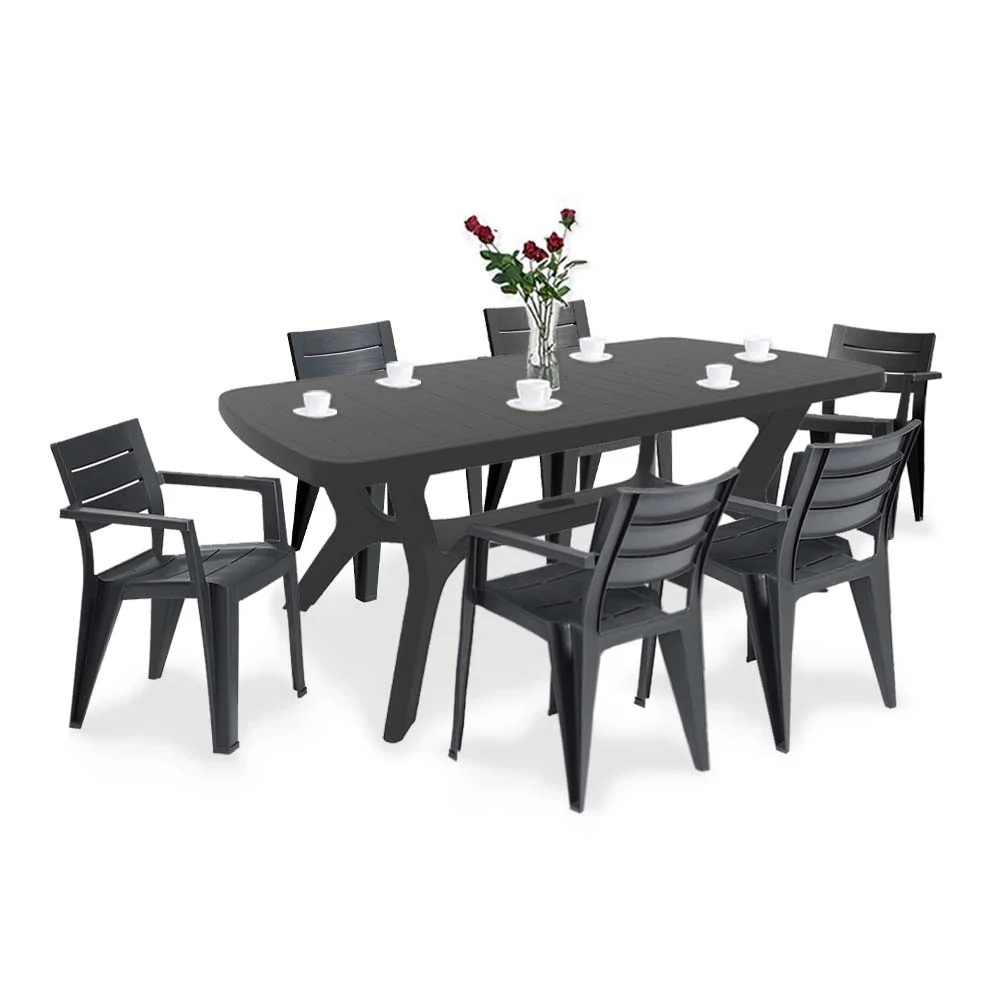 A Juliemore egy modern kerti bútor szett, amely a megfelelően profilozott háttámlájának köszönhetően rendkívül kényelmes. A bútor könnyű, szolid és ellenáll az időjárás viszontagságainak és az UV sugárzásnak. A székek egymásra helyezhetők, ami segít helyet megtakarítani és könnyebbé teszi a tárolását.