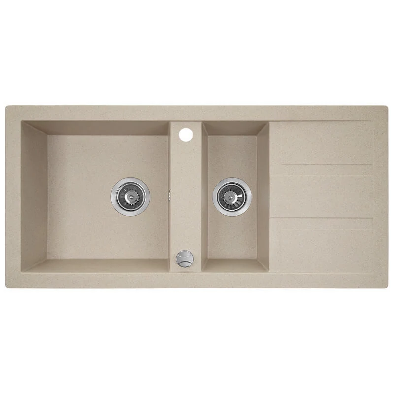 Laveo BARBADOS bézs 1,5 medencés mosogató dugókiemelős helytakarékos szifonnal