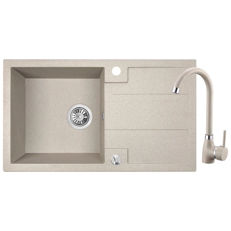 LAVEO TAU 8 bézs nagymedencés mosogató helytakarékos szifonnal