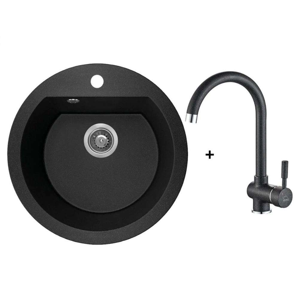 Laveo IBIZA szemcsés fekete egymedencés mosogató helytakarékos szifonnal