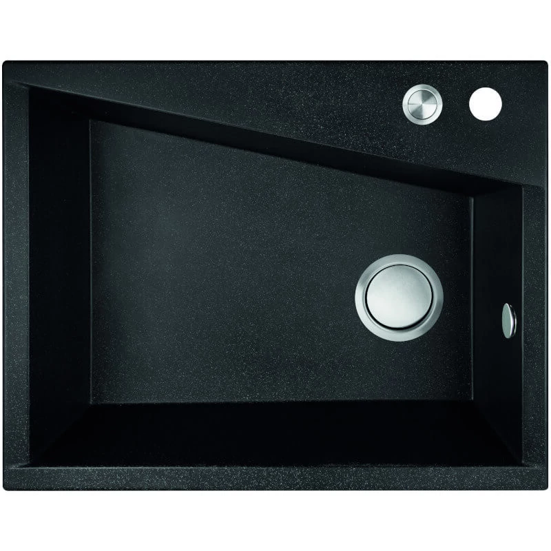 Gránit mosogató, kialakítás: 1 medence, méret: 480x600x227 mm , szekrényméret: 800 mm , felület: fekete , helytakarékos szifonnal és dugókiemelővel
