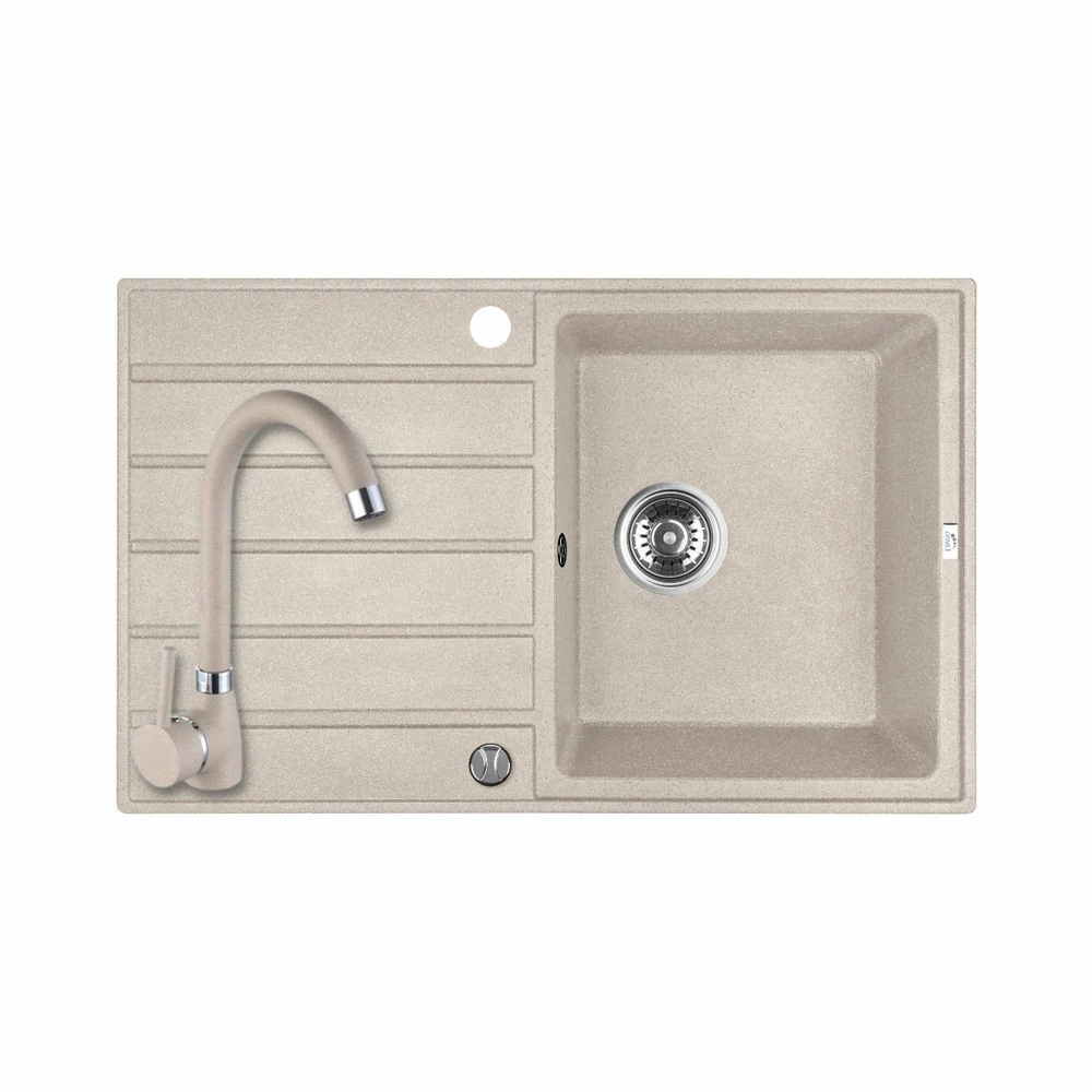 Laveo DAFNE kétkör bézs mosogató dugókiemelős helytakarékos szifonnal