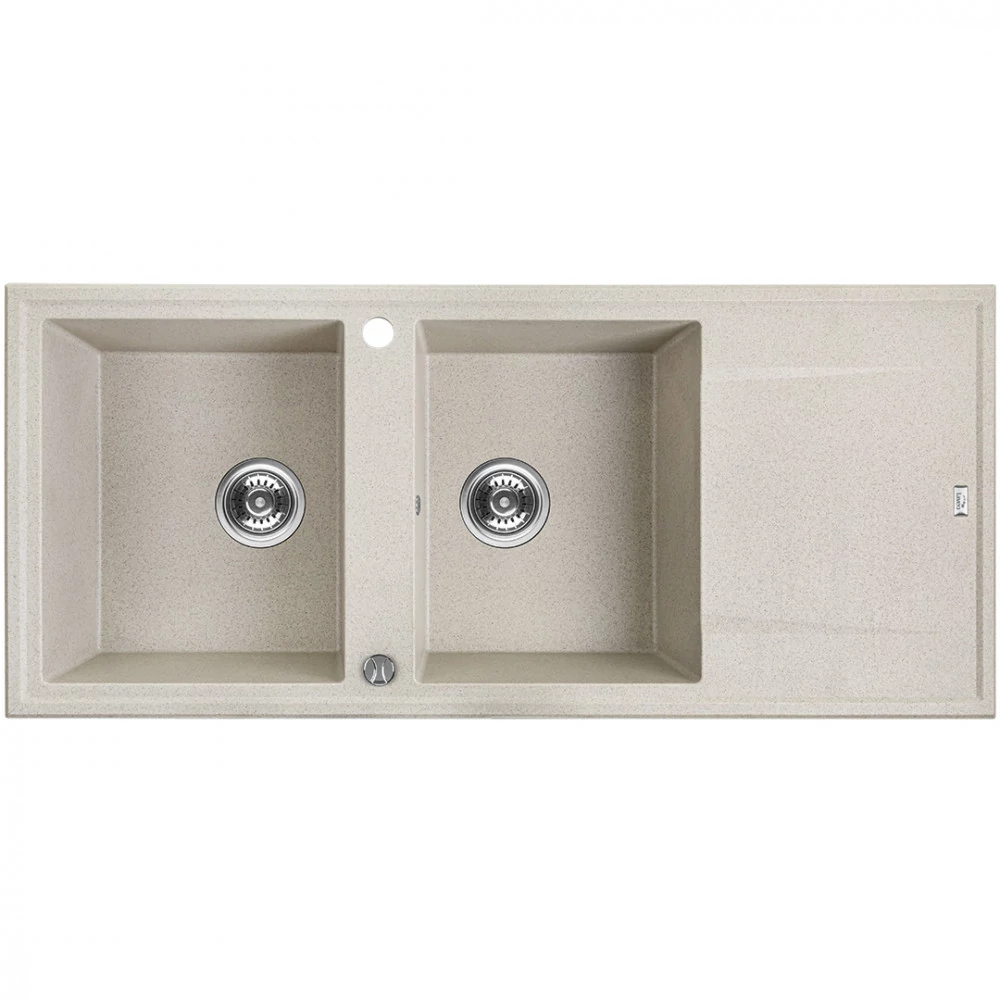 Laveo BARBADOS kétmedencés bézs szett álló csappal dugókiemelős helytakarékos szifonnal