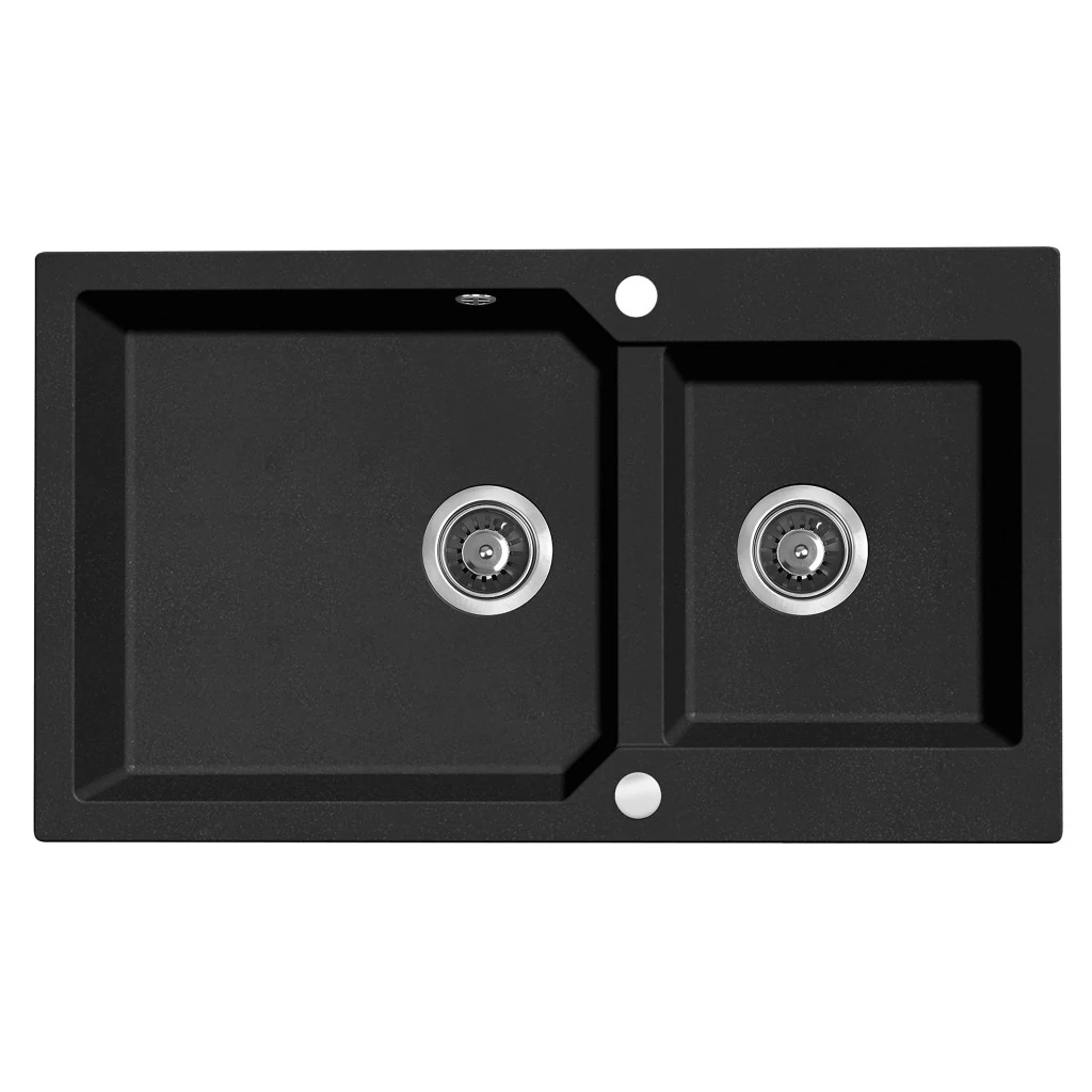 Laveo IBIZA matt fekete egymedencés mosogató helytakarékos szifonnal
