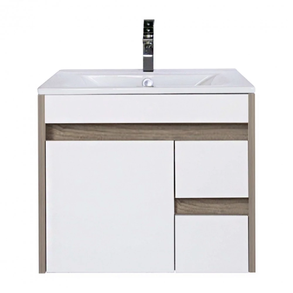 A fürdőszoba bútor tágas fiókokkal rendelkezik ahol kényelmesen elférnek a fürdőszobai pipere eszközök. Kompakt kialakítása miatt kisebb fürdőszobák berendezésére is alkalmas, például panel lakásokban. A termék magas minőségű bútorlapból készül és színben passzoló élzárókkal van ellátva. A fürdőszoba bútor felfüggesztett kivitelben kapható.