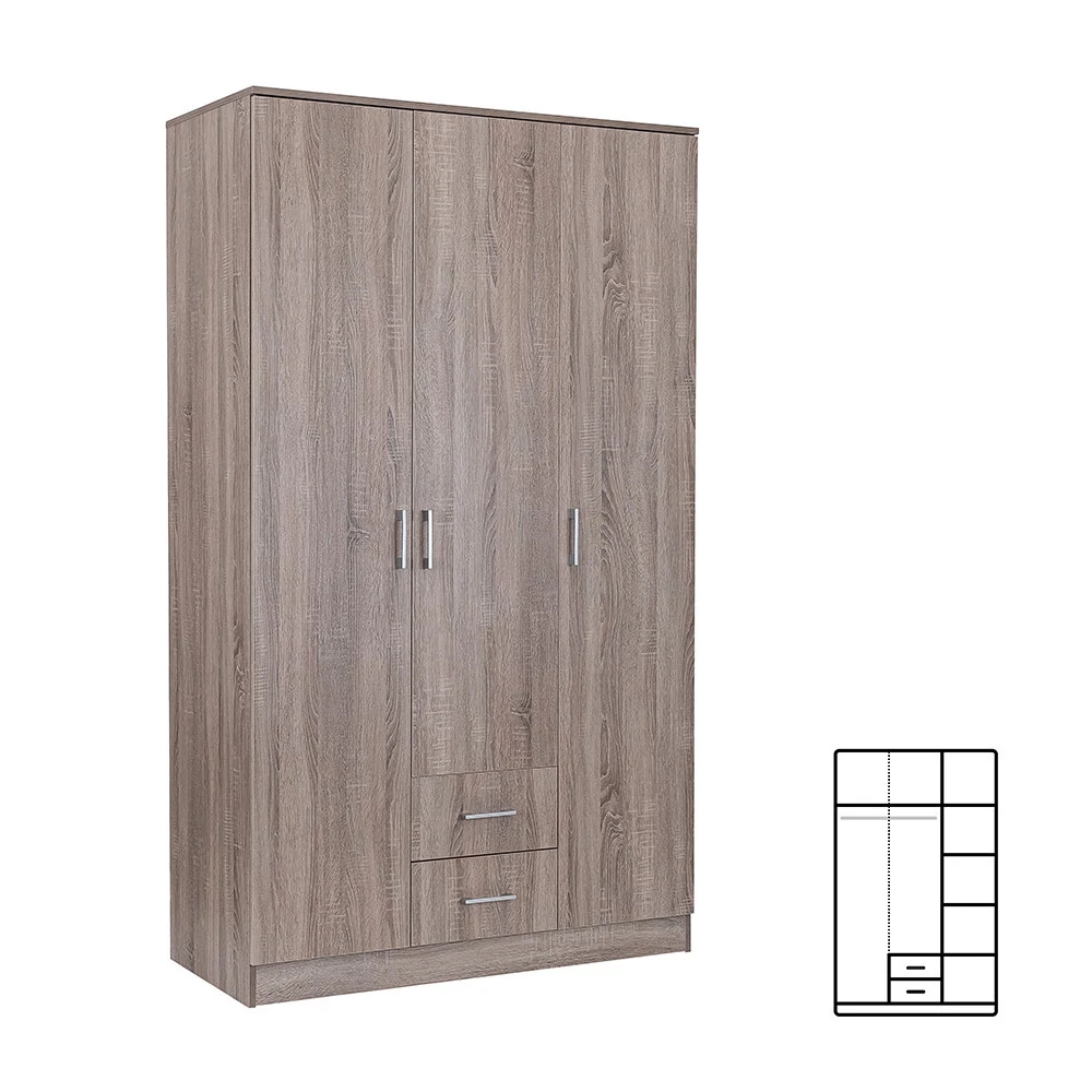 Az elegáns yorki tölgy front és a fahatású yorki tölgy korpusz ötvözete tökéletes harmóniát teremt a nappaliba vagy a hálószobába egyaránt. A 205 cm magas, 120 cm széles és 55 cm mély gardróbszekrény ideális választás mindenki számára, aki szeretné rendszerezni ruháit és kiegészítőit.