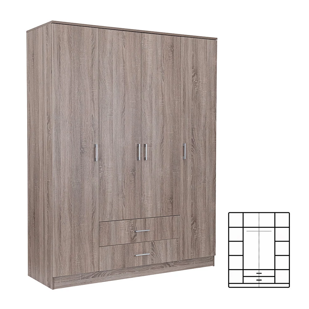 Az elegáns yorki tölgy front és a fahatású yorki tölgy korpusz ötvözete tökéletes harmóniát teremt a nappaliba vagy a hálószobába egyaránt. A 205 cm magas, 160 cm széles és 55 cm mély gardróbszekrény ideális választás mindenki számára, aki szeretné rendszerezni ruháit és kiegészítőit.