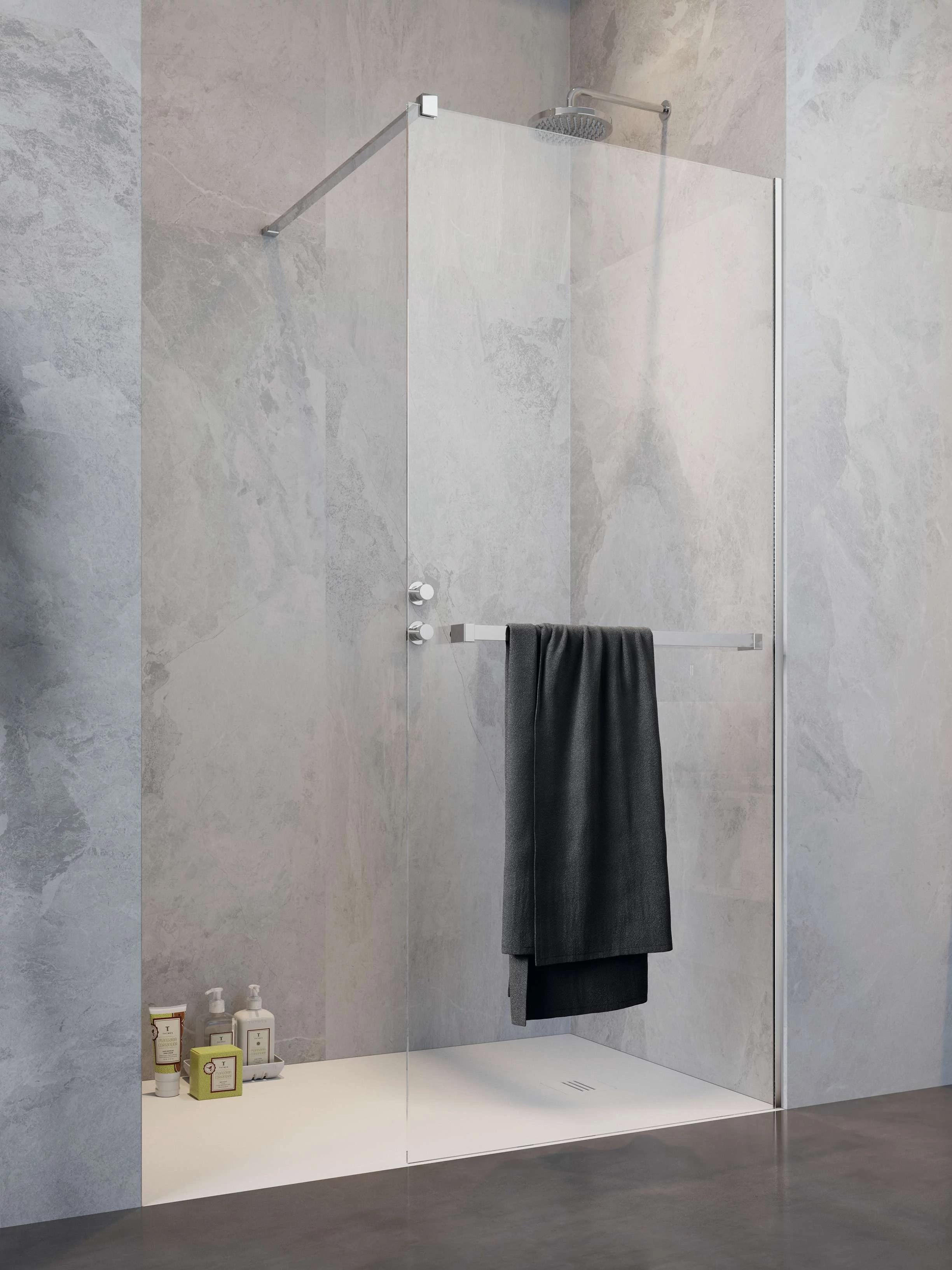 Panoráma a fürdőszobára. Zuhanykabin minimalista stílussal. Szinte észre sem veszi, és tágasabbá teszi a fürdőszobát.8 mm vastag Easy Clean vízlepergető bevonattal ellátott edzett üvegből gyártjuk, mely elsőrendű megoldás vízkőfoltok, lerakódások megakadályozására.Az állítható króm takaróprofil lehetővé teszi a fal függőleges eltéréseinek kiigazítását.Szilárd tartórúd a tökéletes rögzítésű zuhanyfalakért.Opcionális függőleges teleszkóprúd.Lehetősége van kiegészítő oldalfallal (SW) is megrendelni a zuhanyfalat.A Modo New II 100-tól 160-ig a törölközőtartót aszimmetrikusan helyezzük el.A Modo New II törölközőtartóval univerzális, fordítható. Jobbos és balos verzióban is beépíthető!