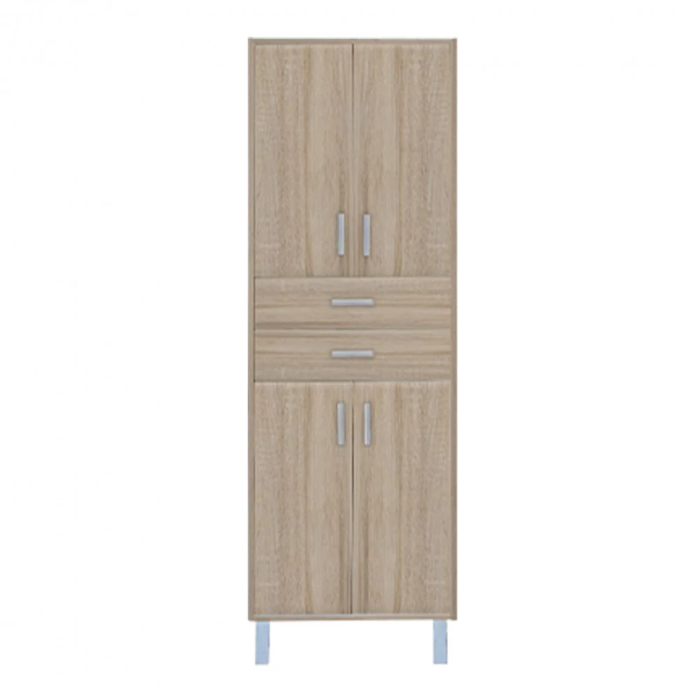 A fürdőszoba bútor kevés helyet foglal viszont rendelkezik két darab két ajtós szekrénnyel és két tágas fiókkal ahol kényelmesen elférnek a fürdőszobai pipere eszközök. Kevés helyigénye miatt kisebb fürdőszobák berendezésére is alkalmas, például panel lakásokban. A termék magas minőségű bútorlapból készül és színben passzoló élzárókkal van ellátva. A fürdőszoba bútor álló kivitelben kapható.