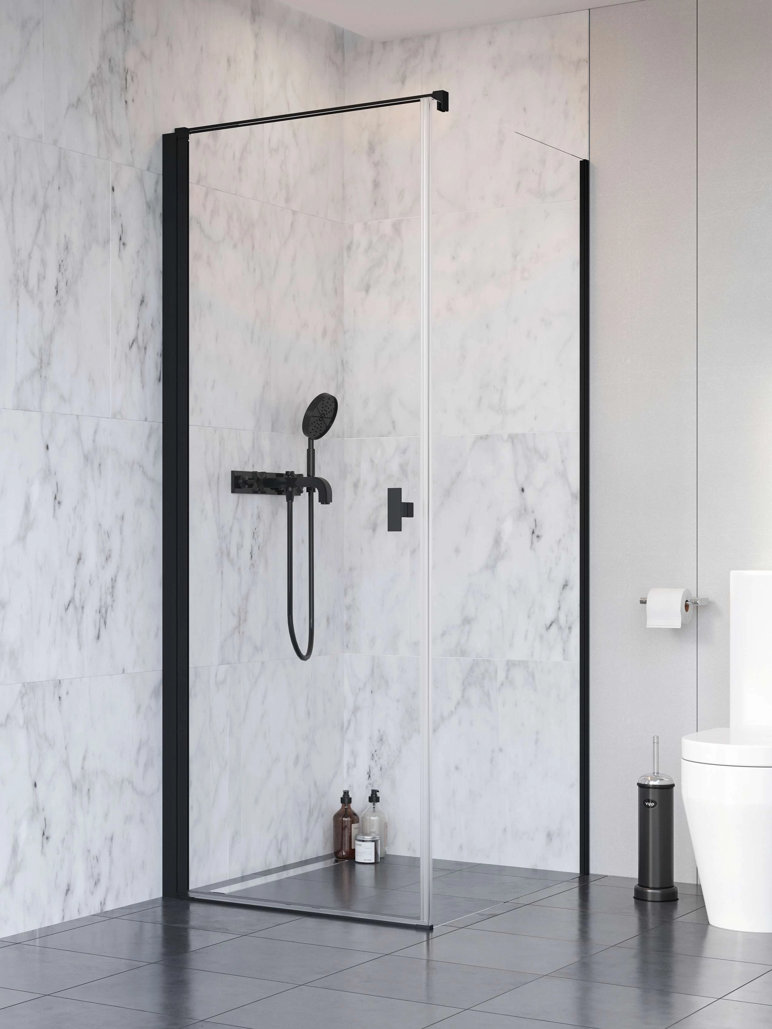 A legnagyobb szabadság. A NES a speciális profilzsanérjaival kifelé és befelé a legnagyobb méretben nyitható, így egy kisebb fürdőszobában sem kell kompromisszumot kötni a térrel.6 mm vastag, Easy Clean vízlepergető bevonattal ellátott edzett üveggel gyártjuk, mely elsőrendű megoldás a vízkőfoltok ellen, valamint a lerakódások megakadályozására.Nagy stabilitást biztosító tartórúd.Elegáns, praktikus elemek.Precíz vízzárást biztosító emelőmechanikás profilzsanér az üveg teljes hosszában.A mechanika közel 180 fokos mozgást tesz lehetővé Az állítható takaróprofil lehetővé teszi a fal függőleges eltérésének kiigazítását 15 mm-es tartományban.Integrált gumiütköző a fogantyú belső felületén.HOGYAN ÁLL ÖSSZE AZ ÁR:A Nes Black KDJ I zuhanykabin 2 elemből áll: ajtó és oldalfal. Mindkét elemnek saját termékkódja van. A kabin rendelésekor 2 termékkódot kell megadni. (Példa: 1 db KDJ I 90B + 1 db S1 90 = 90x90-es balos zuhanykabin)