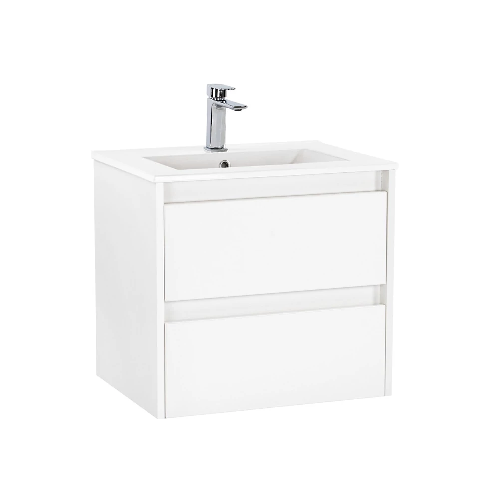A csomag részét képzi egy méretben passzoló kerámia mosdó is, így ezt nemkell külön beszereznie. A mosdó elkészítésekor kiváló minőségű kerámiát alkalmaztak, ezzel garantálva az időtállóságot. A mélymedencével ellátott mosdóban egy csaptelepnek van kialakított hely.