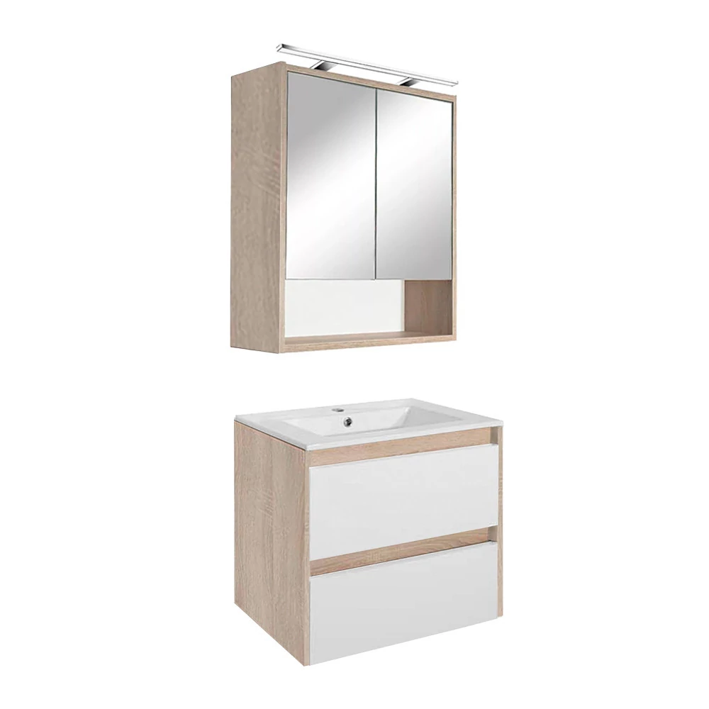 Leziter Porto 60 komplett sonoma tölgy–fehér – alsó és felső fürdőszobabútor mosdóval