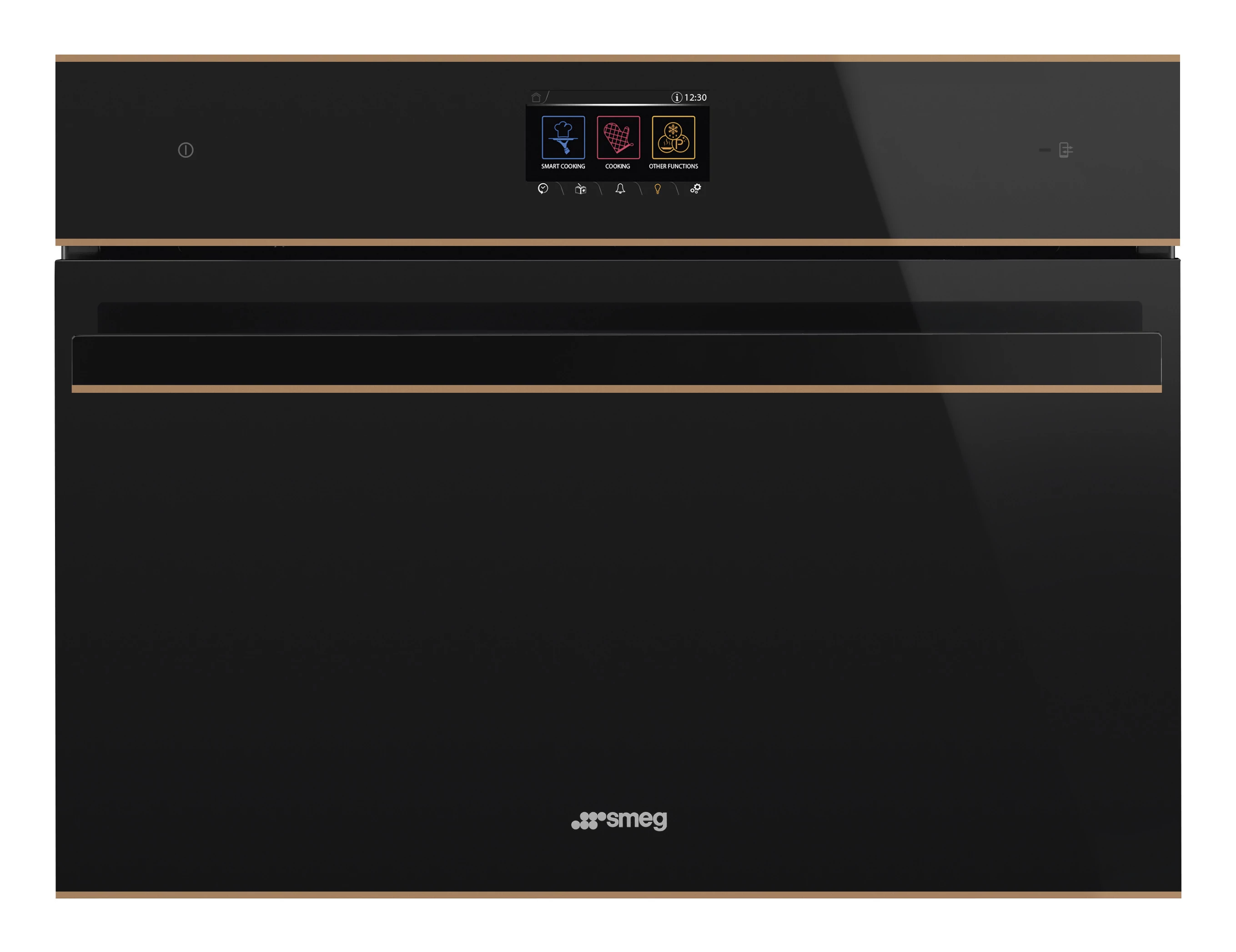 SMEG KOMPAKT KOMBINÁLT GŐZPÁROLÓ-SÜTŐ, Dolce Stil Novo design, 16 funkció, 5 gőzfunkció, egyéb gőzfunkciók, Vitality system, új generációs színes TFT kijelző, érintőszenzoros vezérlés, fekete üveg réz díszítéssel