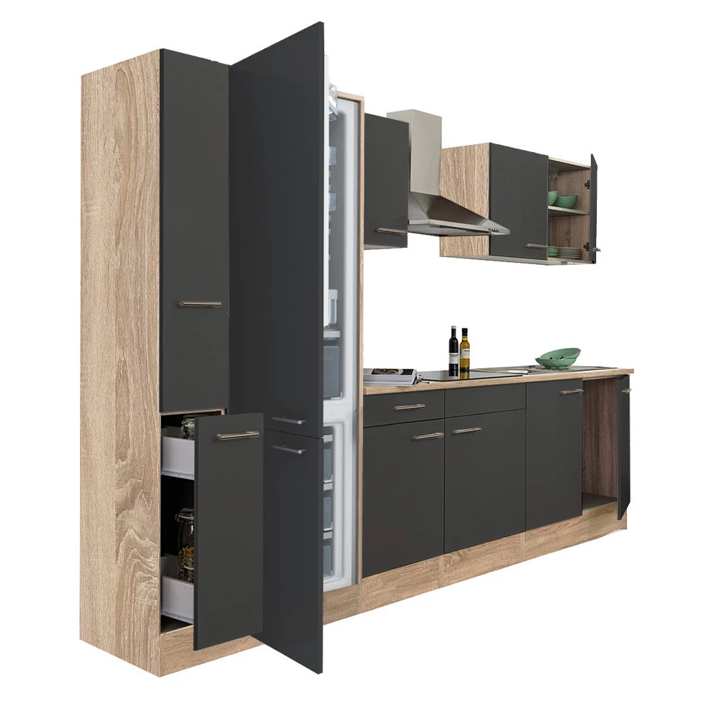 Yorki 300 konyhablokk sonoma tölgy korpusz,selyemfényű antracit fronttal. A tökéletes konyha megteremtője!